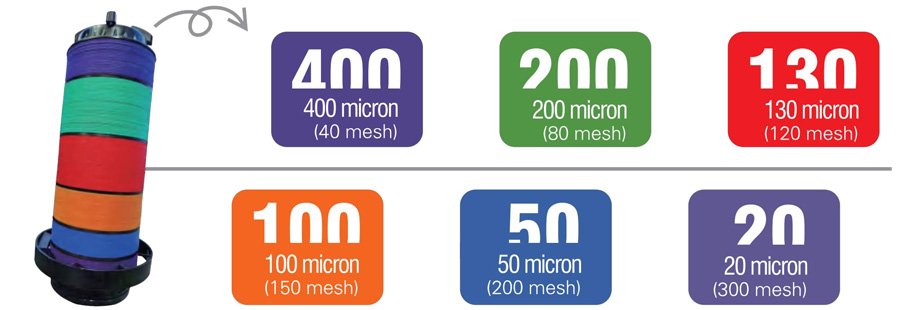 The customer could choose the different filtering element according to the water quality and required filtration grade. The filtration grade is distinguished by different colors as below.
